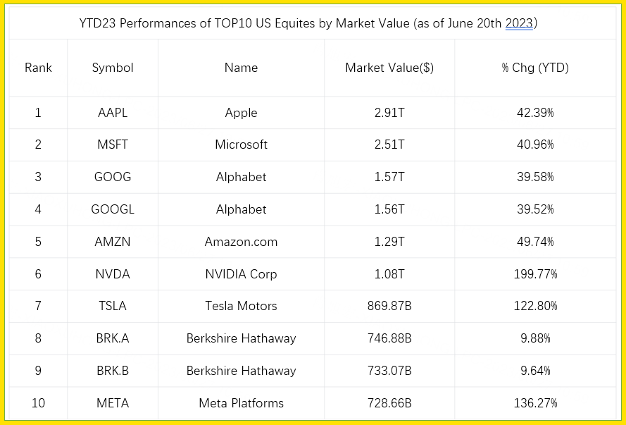 And the performances of top 10 stocks by market value in H12023 are as follow: