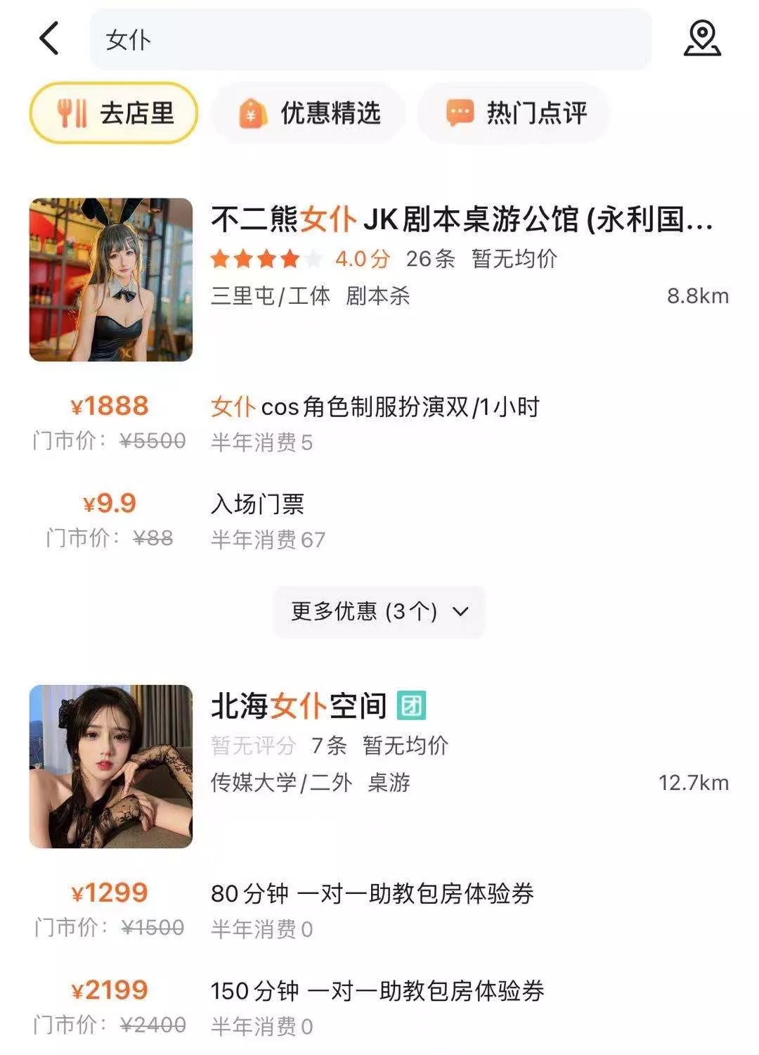 打開$美團-W(03690)$ 搜個“女僕”的關鍵詞