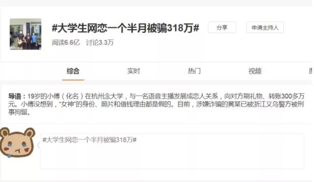 上週還有大學生網戀一個半月被騙318萬