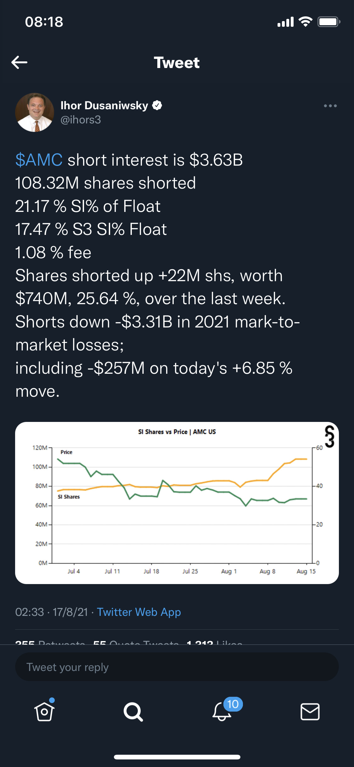 $AMC Entertainment(AMC)$latest SI% getting me all excited! Shorts really love losing money huh. $3.3Billion this year already still don’t wanna cover. ?