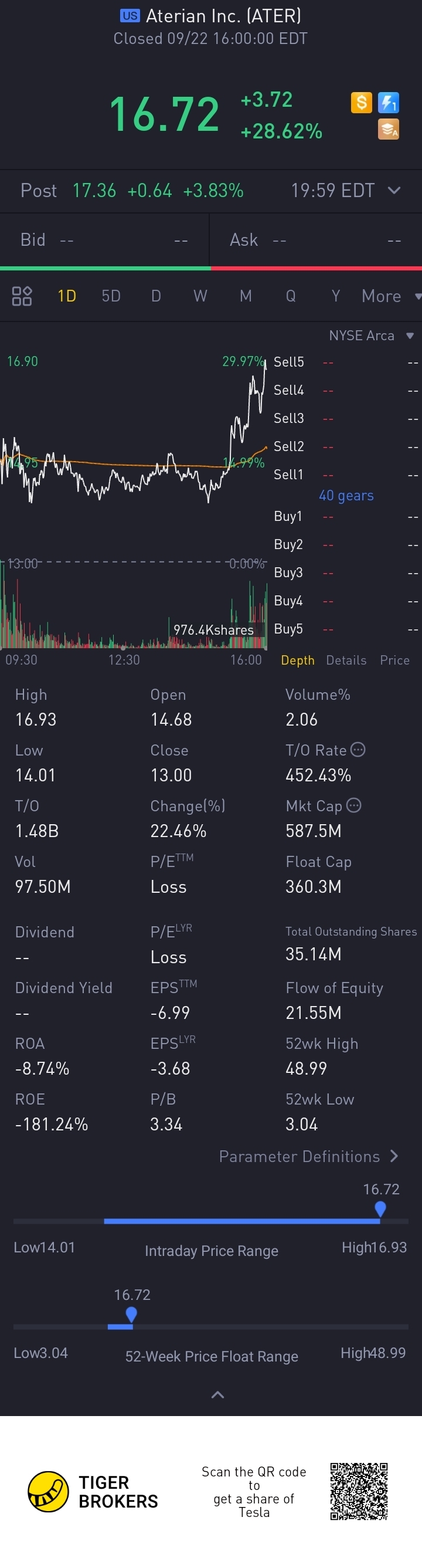 $Aterian Inc.(ATER)$as predicted in my earlier post.Up n up! Yippee! Will take sell when it hits 18??