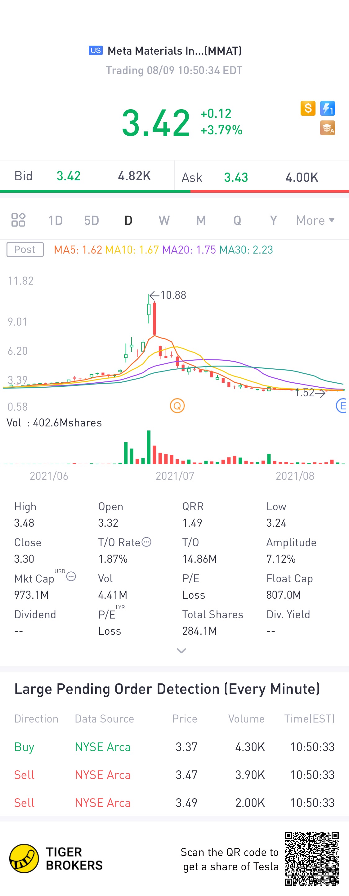 MMAT is slowly rising from the recent low. With higher volume, it will reverse to the rising trend again.