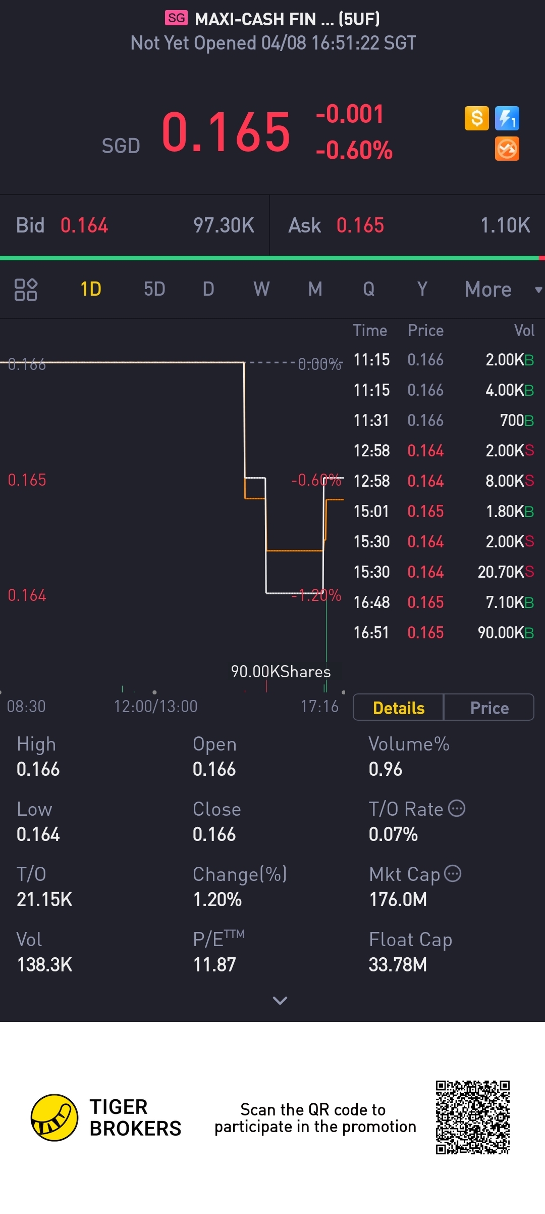 $MAXI-CASH FIN SVCS CORP LTD(5UF.SI)$slowly up