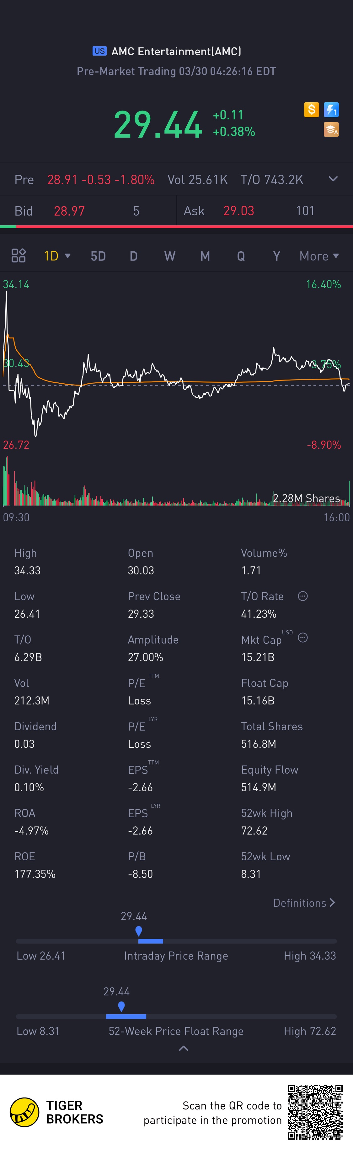 $AMC Entertainment(AMC)$THE ONE STOCK YOU MUST HAVE! Join the ape family with hundreds of thousands of us holding! Wenever sell at $72, neither will we sell at $30! To the moon! 🚀🚀🚀