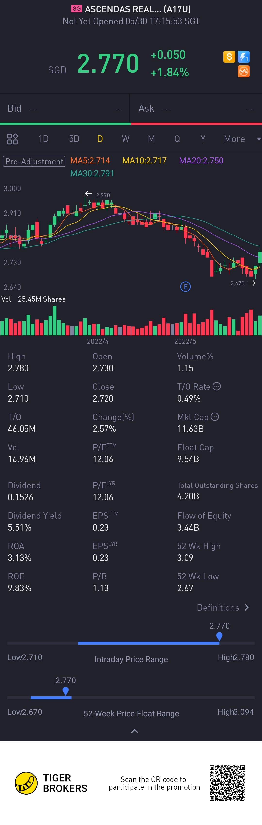 $ASCENDAS REAL ESTATE INV TRUST(A17U.SI)$One of the strongest Reits in SG, when is the next Dividend payout be?