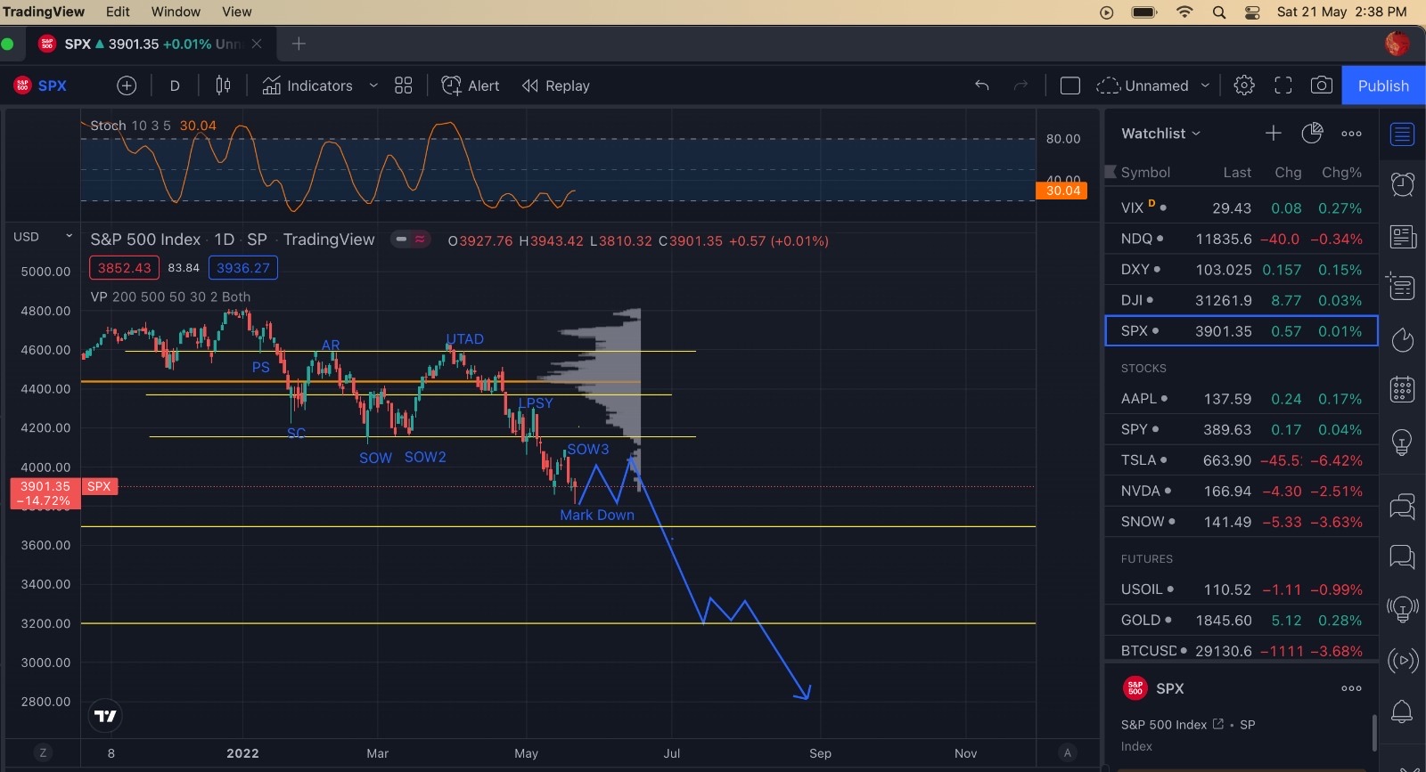 $S&P 500(.SPX)$with the ongoing Wyckoff Re-Distribution which is the continuous bear trend, we are approaching phase E which will markdown a huge flush like in the 2008 series. Magnitude lvl as pershown.