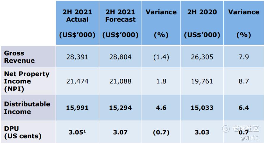 As compared to 2H 2020, gross revenue, NPI, distributable income and DPU have improved YoY due to higher contribution from self-storage properties as well as newly acquired properties.