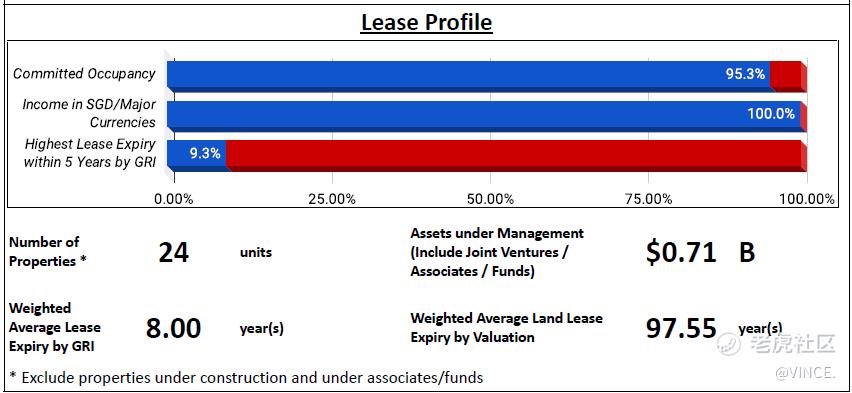 - Highest lease expiry within 5 years is low at 9.3% which falls in 2024