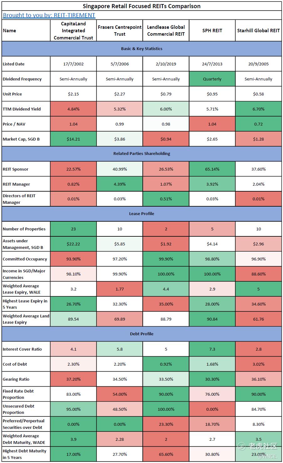 SREITs Dashboard @https://www.reit-tirement.com/p/sreits-dashboard.html - Detailed information on individual Singapore REIT