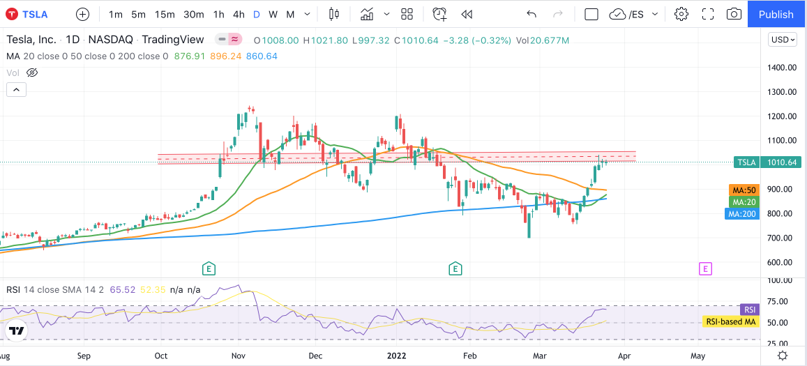 Both $Apple(AAPL)$ and $Tesla Motors(TSLA)$ are in my long term portfolio and I looked to accumulate when opportunity presented itself. Prices has run up since second dip in price around 14-15 Mar, with Apple gaining 16% and TSLA, a massive 33.9%. Added small positions but of course, did not catch the bottom, sitting on gains of ~9 to 16% respectively. Such rapid price rise is unsustainable based on past history, and likely see retracements of price or consolidating near current levels. Due to planned FED rate hikes until end of this year at least, with more expensive borrowings, Tech sector growth rate including APPL and TSLA might slow or be curtailed