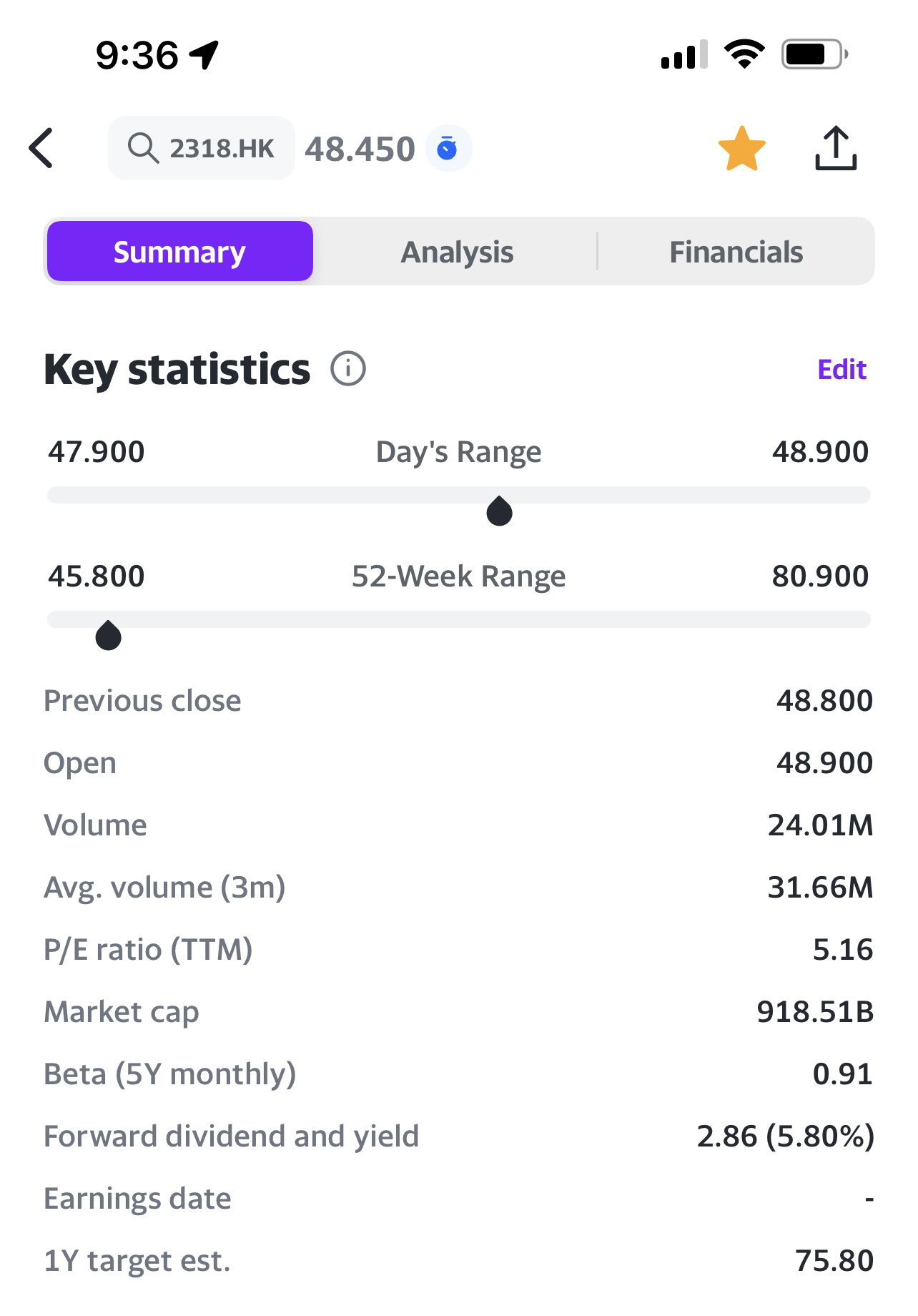 $PING AN(02318)$has been such a laggard. Down40% in past 12 months. When will it start moving as China equities have recently started an upswing?!