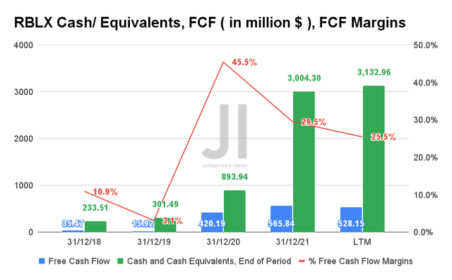 RBLX Cash/ Equivalents, FCF, and FCF Margins