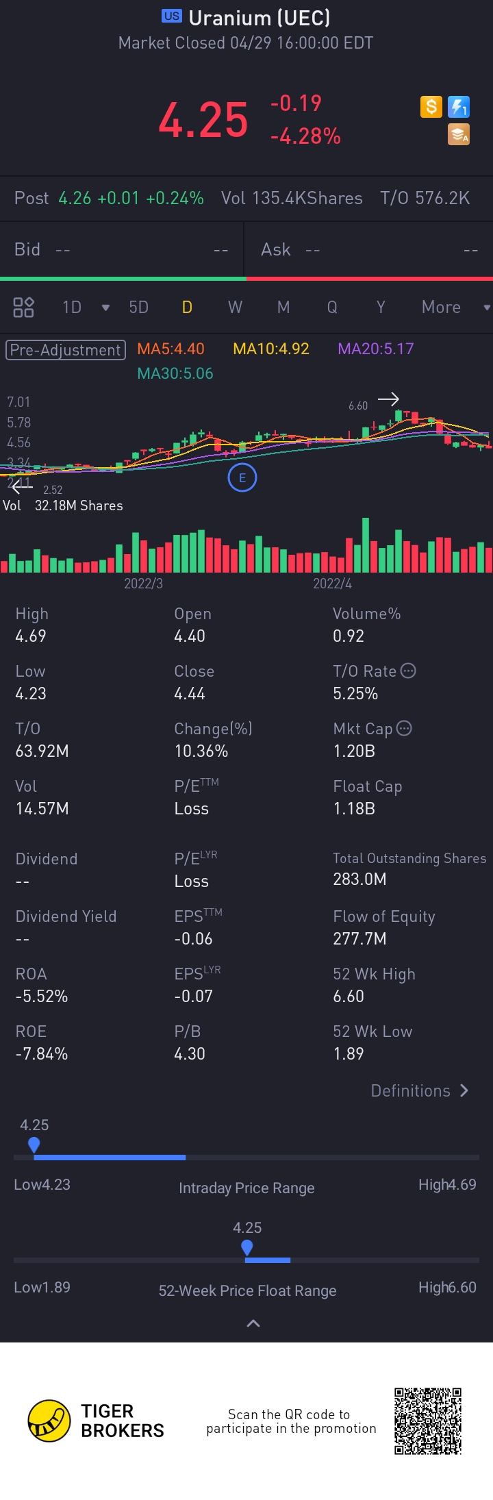 - ThinkOrSwim·2022-05-02Short term downward sloping channel. A probable nibble oint is $4 - cos the overall markets is facing headwinds from FED-speak. Wait till 5-6 May to make a decision on entry.LikeReport