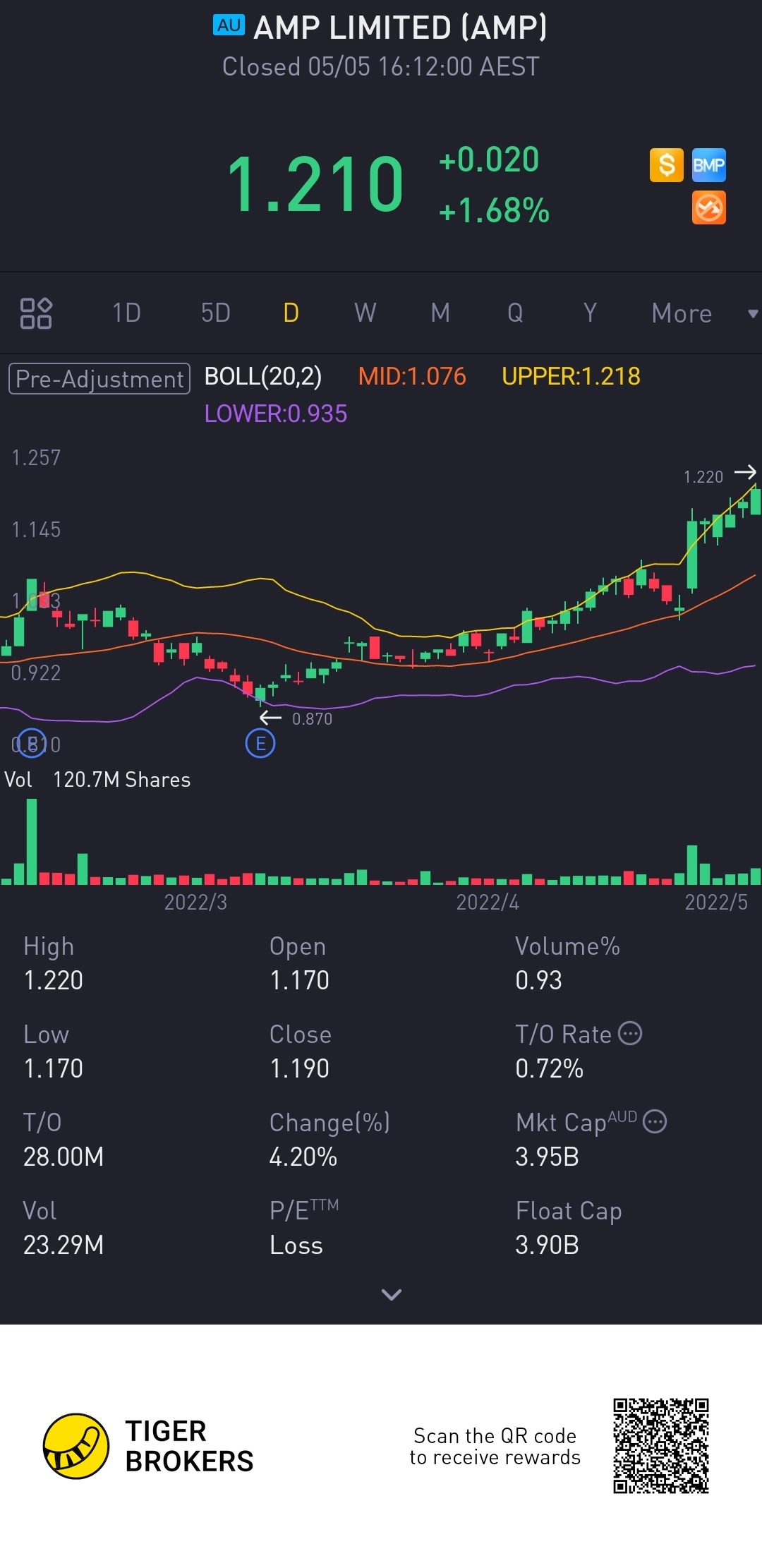 $AMP LIMITED(AMP.AU)$slowly slowly to 52 week high.