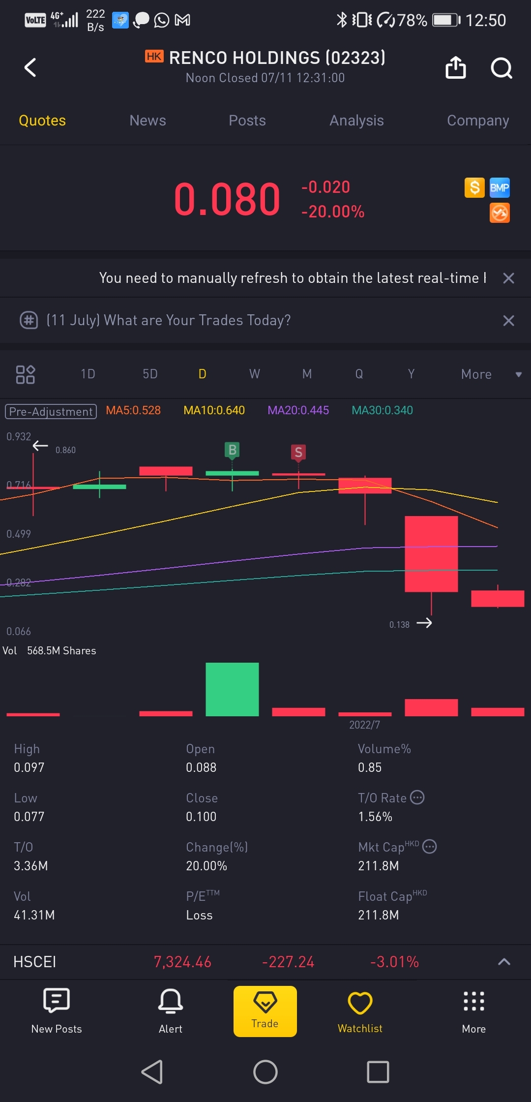 $RENCO HOLDINGS(02323)$bought and sold one day apart after revisiting the chart. Received the buying tips from Telegram group.