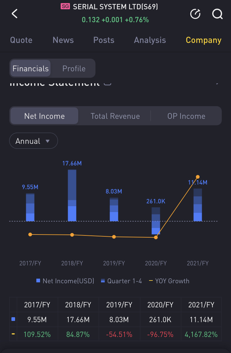For growth stock, my new addition is $SERIAL SYSTEM LTD(S69.SI)$found it thru Heatmap, technology. Previously i bought $EXCELPOINT TECHNOLOGY LTD(BDF.SI)$and $KARIN TECHNOLOGY HLDGS LIMITED(K29.SI)$both are good too, but excelpoint the price has jump so high, hope my new addition can grow high too, its net profit records are on the uptrend [Cool]
