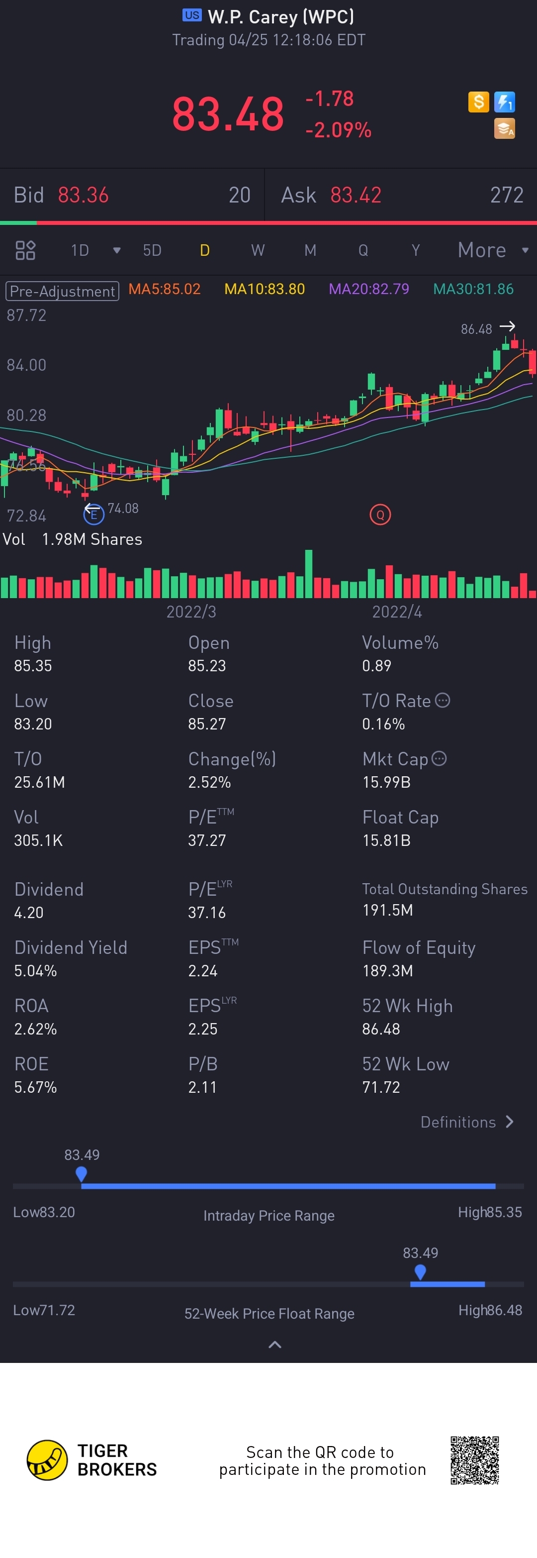 Waiting to buy the dip at 75.0. Meanwhile still collecting dividends while all unstable price still falling.