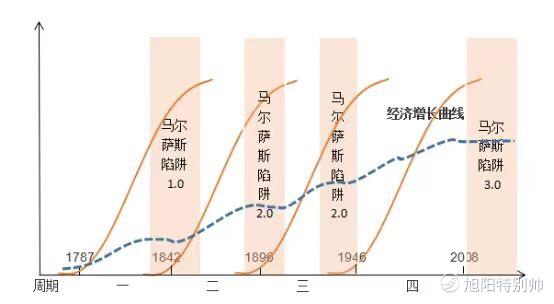但是技術和下一次技術革命的銜接並不是那麼緊鑼密鼓地出現,也不是無縫連接,在一項技術到達巔峯時期即飽和時期的同時,也意味着它開始走下坡路。在下一項技術革命出現和大規模應用之前,經濟會進入馬爾薩斯陷阱也可以理解爲經濟停滯。這段時期內的主要表現我們現在經常在一些國家和地區可以看到--諸如戰爭,國家政局不穩定,犯罪率上升,暴亂猖獗等。經濟向好,人們都忙着賺錢,哪有功夫去搞亂七八糟的事情呢?肯定是覺得活着不爽,吃不飽,穿不暖,然後還要被特權階級剝削,自然是摔碗不幹了。經濟基礎決定上層建築,牛逼的一句話。
