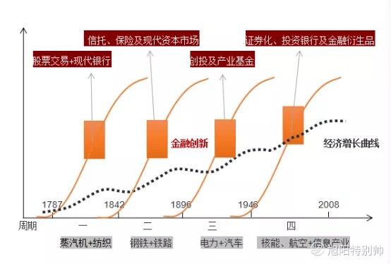 高潮迭起,不斷地推動人類的經濟發展,我們開始了第三次工業革命--核能,航空,生物技術,互聯網技術如雨後春筍,它是人類歷史上最大規模的科技康波。每一次技術革命,發展到中途都會有金融助力,畢竟做什麼事都不能少了資本,股票交易和現代銀行的誕生;信託,保險,現代資本市場的應用;創投及產業基金的創造性發明;證券化,投資銀行以及衍生品的不斷出現--都能很好地讓人類向着高處繼續發起挑戰。