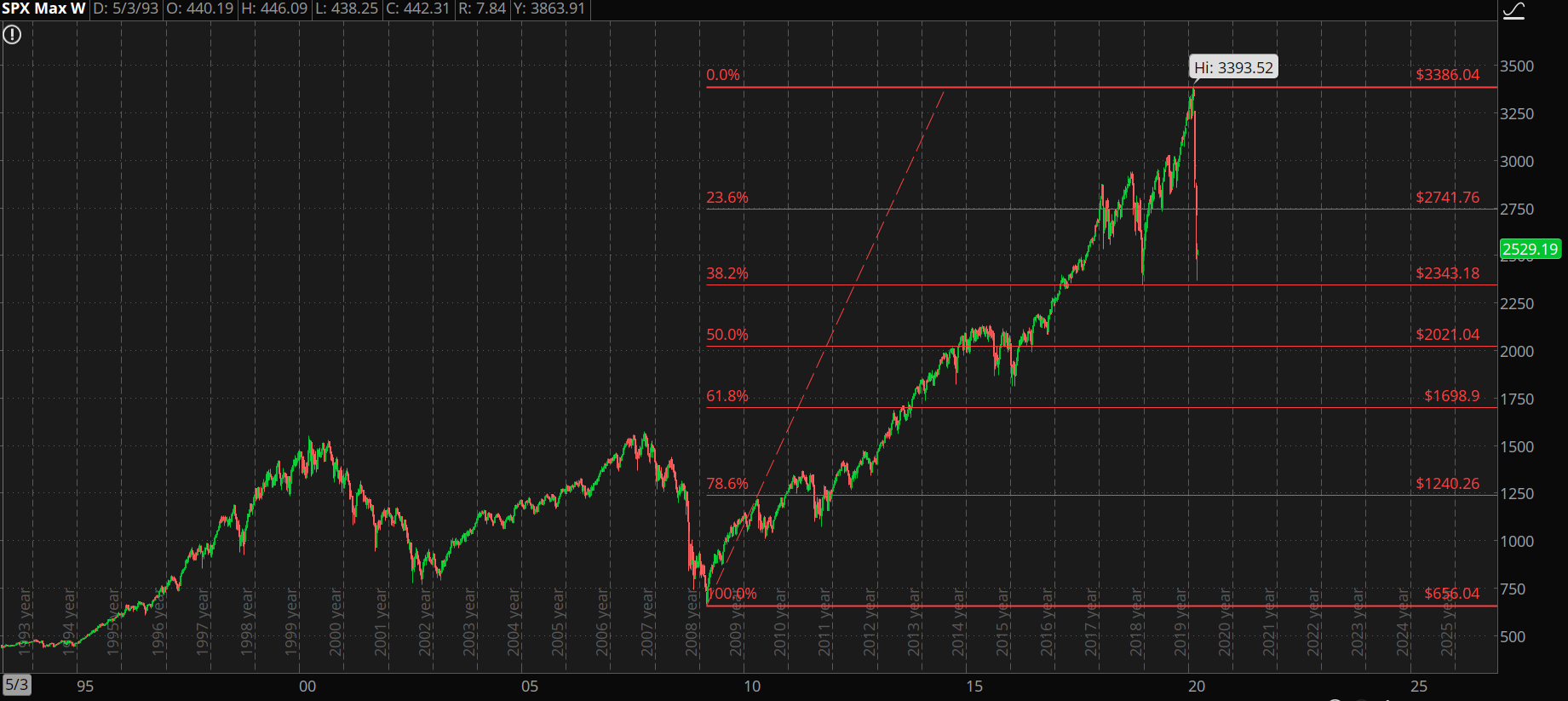 Above : Chart of S&P 500 index 1993-2020 (Source : TD Ameritrade - ThinkorSwim)