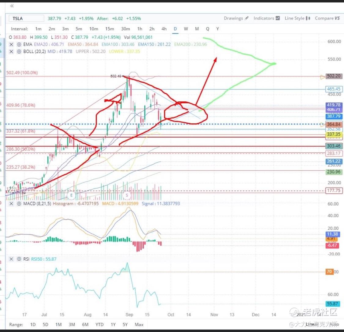 $特斯拉(TSLA)$走勢和前二波,似乎雷同?耐心持有吧!