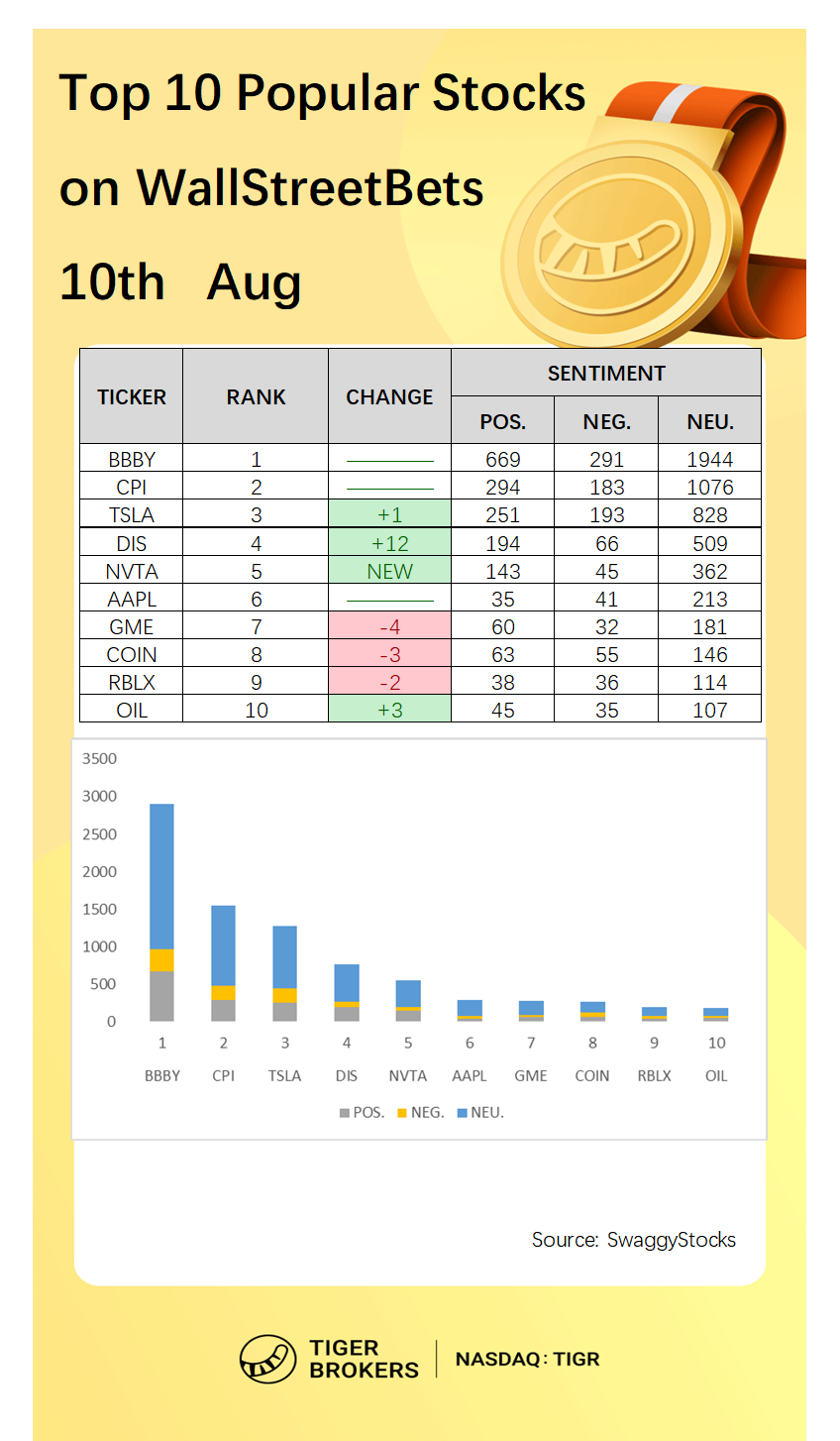 $Tesla Motors(TSLA)$ $Bed Bath & Beyond(BBBY)$ $IQ Real Return ETF(CPI)$ $GameStop(GME)$ $Coinbase Global, Inc.(COIN)$ $Apple(AAPL)$ $Roblox Corporation(RBLX)$ $Walt Disney(DIS)$ $iPath Pure Beta Crude Oil ETN(OIL)$ $Invitae(NVTA)$