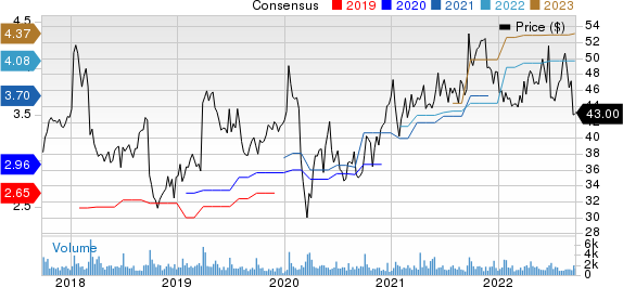 The Zacks Consensus Estimate for fiscal 2022 revenues and earnings is currently pegged at $611.86 million and $4.08 per share, respectively.