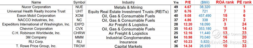 1. CVX and XOM, you probably also know that we are in general bullish about energy stocks. And the fact that both CVX and XOM made it to the top 10 list of this screening adds another piece of data point to their attractiveness.