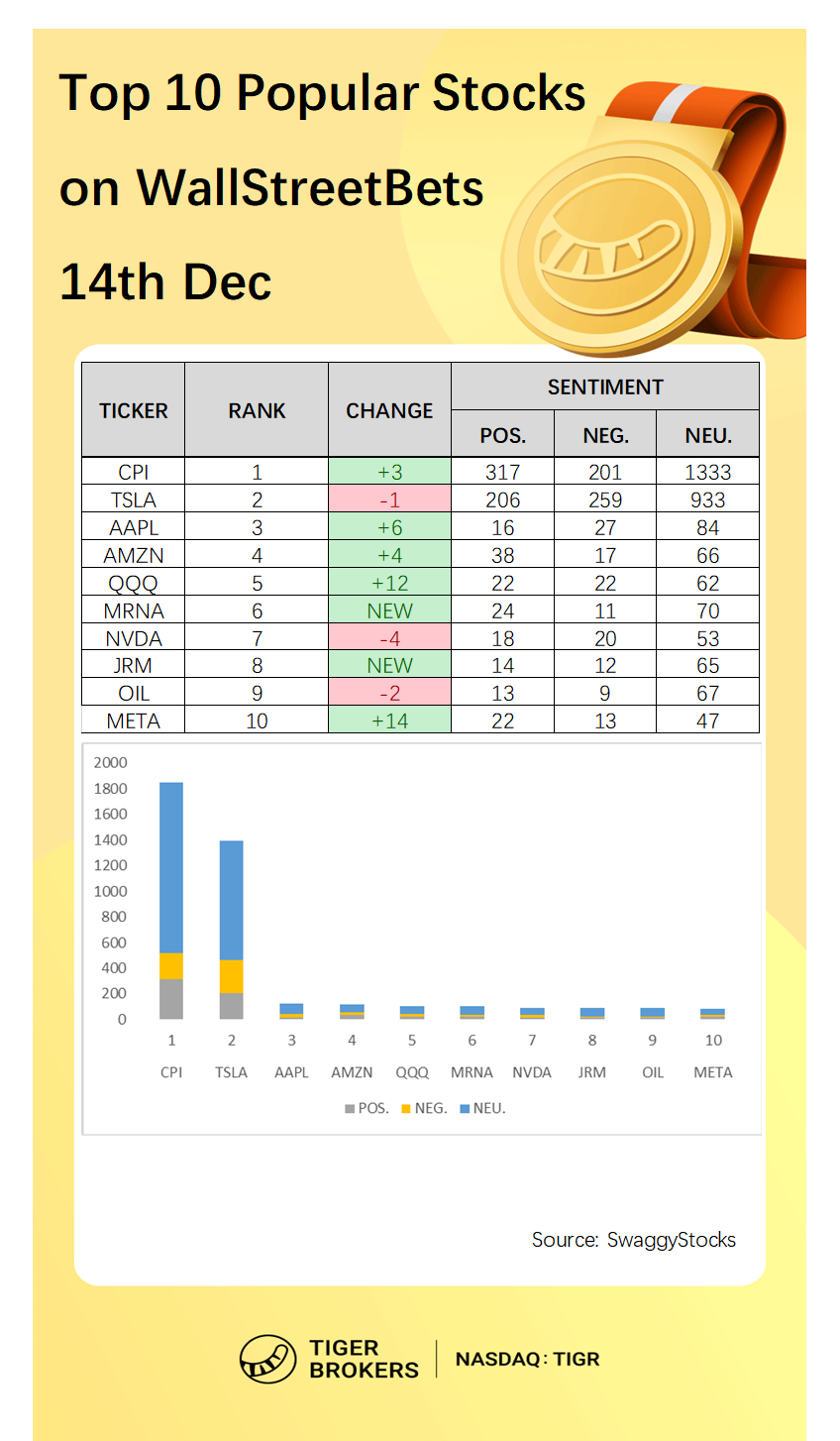 $Tesla Motors(TSLA)$ $Apple(AAPL)$ $CPI(CPI)$ $Amazon.com(AMZN)$ $QQQ(QQQ)$ $Moderna, Inc.(MRNA)$ $NVIDIA Corp(NVDA)$ $JPMorgan Chase(JPM)$ $OIL(OIL)$ $Meta Platforms, Inc.(META)$