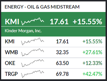 Oil & Gas Midstream stars: $Kinder Morgan(KMI)$, $Williams(WMB)$, $ONEOK Inc(OKE)$, $Targa Resources(TRGP)$.