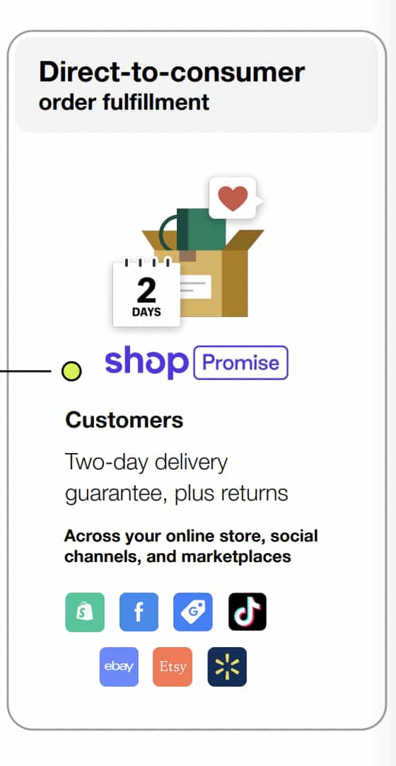 By leveraging Deliverr software in SFN hubs and SFN Spoke partner warehouses all equipped with 6 River Systems technology, we can forward position merchants inventory to support timely fulfillment with a minimal inventory commitment for merchants. We've also continued our early access to Shop Promise, which lets merchants offer 2-day delivery promises across online storefronts and channels like Google, Facebook and Instagram. Deliverr data suggests that as Shop Promise reaches scale, many merchants will be able to increase average conversion rates by more than 30%.