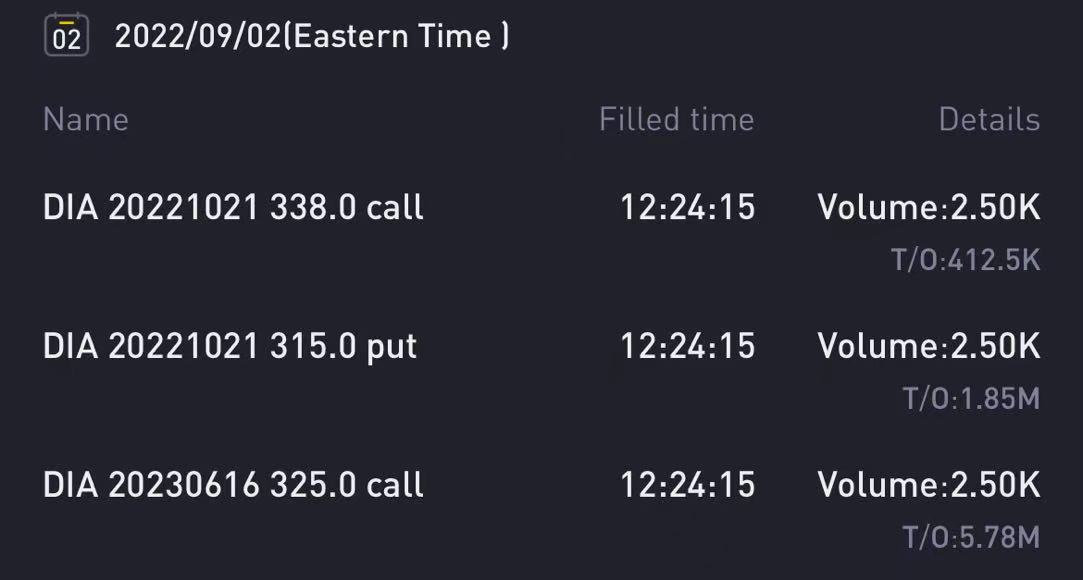 Unlike the QQQ and SPY, the Dow Jones ETF is a large-cap ETF with less active options, but there was an interesting set of large orders traded on Friday, totaling more than $7 million: