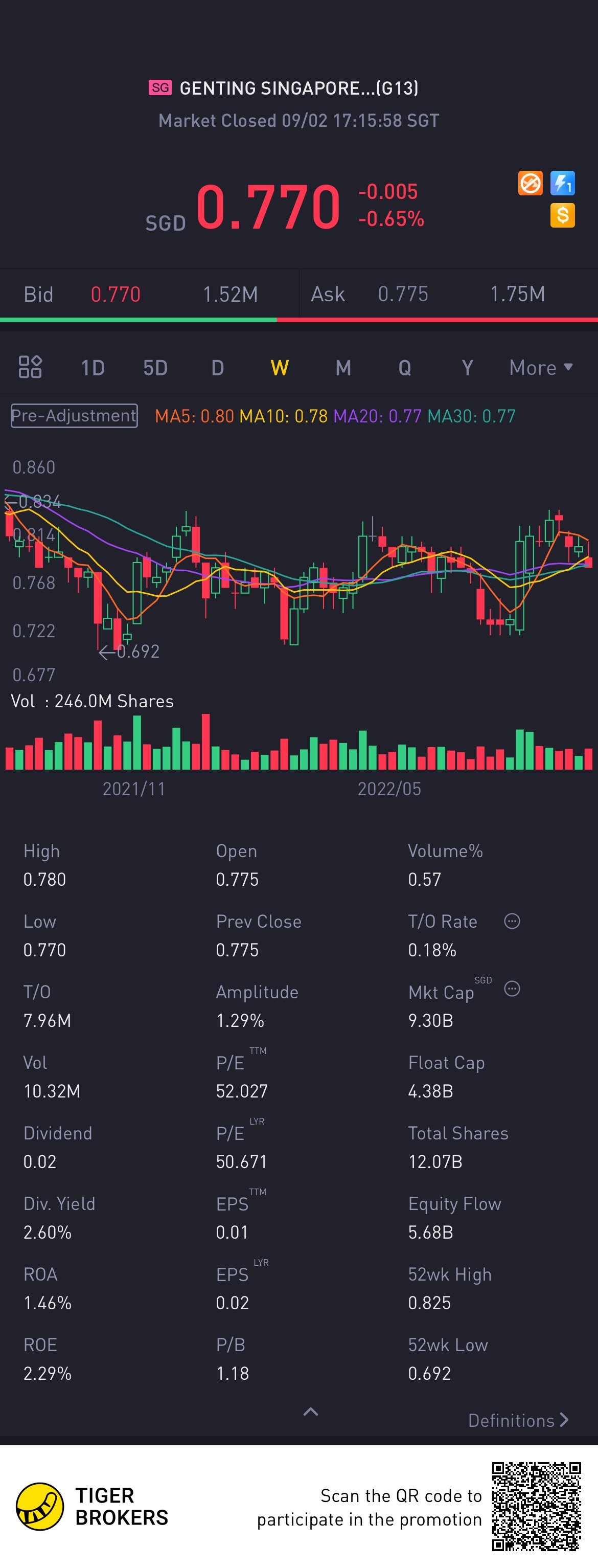$GENTING SINGAPORE LIMITED(G13.SI)$Good
