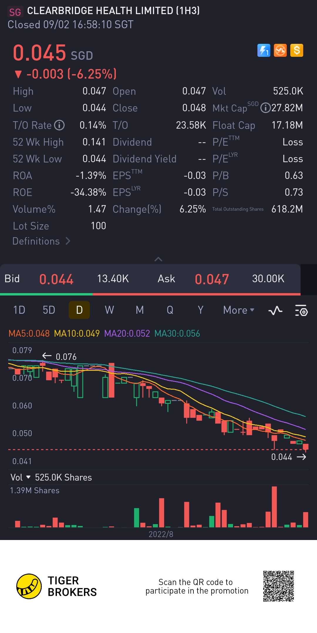 $CLEARBRIDGE HEALTH LIMITED(1H3.SI)$ddaily