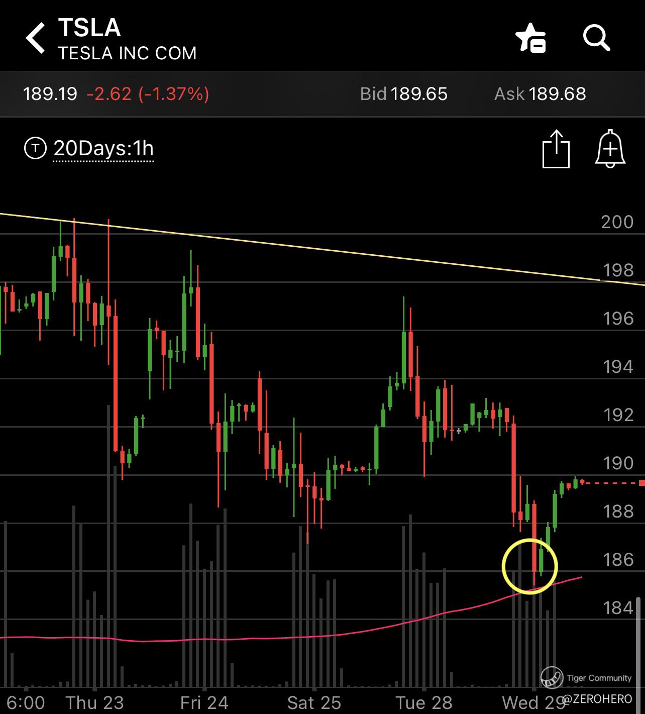 $Tesla Motors(TSLA)$ 7% gain taking puts under 190 as posted on Mon. The price rebounded from 200 SMA from the sell down. ⚠️ Looking atcalls above 190 (break & hold) and puts under 188 on Wednesday. Price likely to be affected by the financial news and data releases this week.