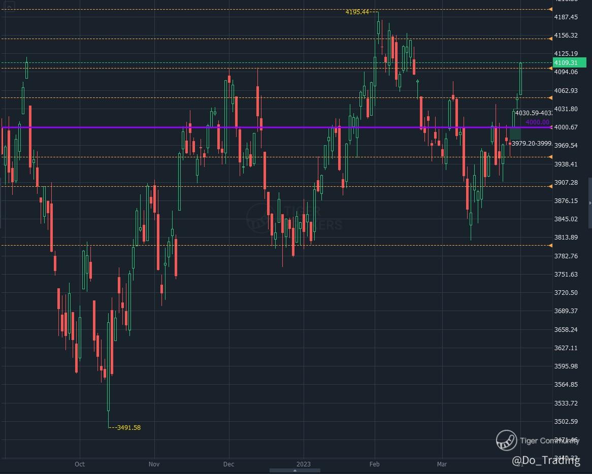 Higher levels: 4100 - 4150 with 4200 in higher resistance