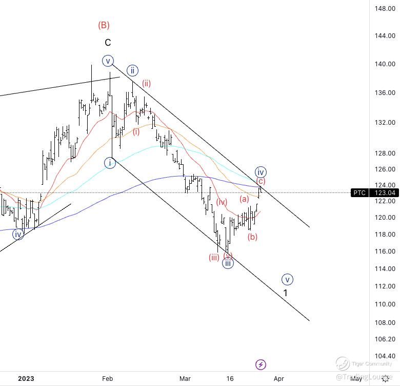 PTC Trading Strategy: Looking for downside with a stop at the top of wave {i}.