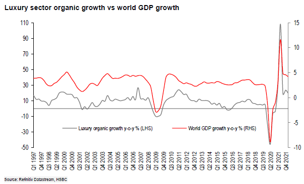 Over the past few quarters, global luxury sales growth has remained very strong, and the growth of the luxury industry has shown a fairly strong/positive correlation with global GDP. In addition, the growth of the luxury industry is also related to the equity market, consumer confidence, tourist flow and currencies rate volatile.