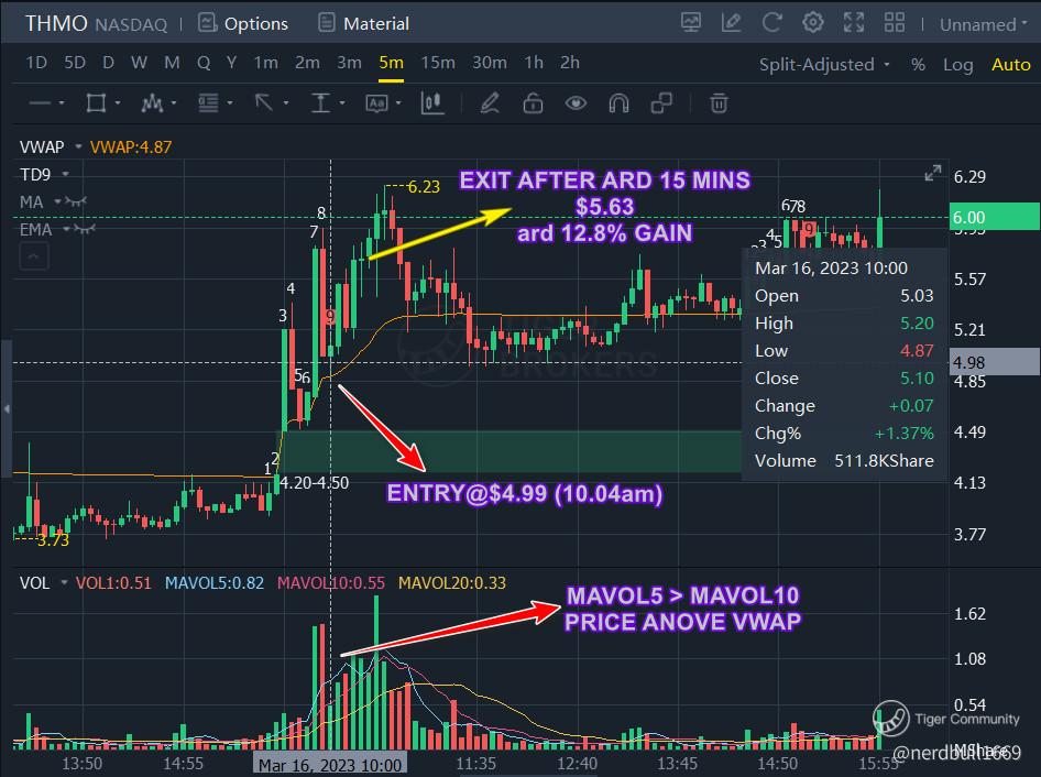 I was monitoring the price of ThermoGenesis Holdings, Inc. (THMO) which is still close to VWAP, but MAVOL5 is not clear enough to be above MAVOL10.
