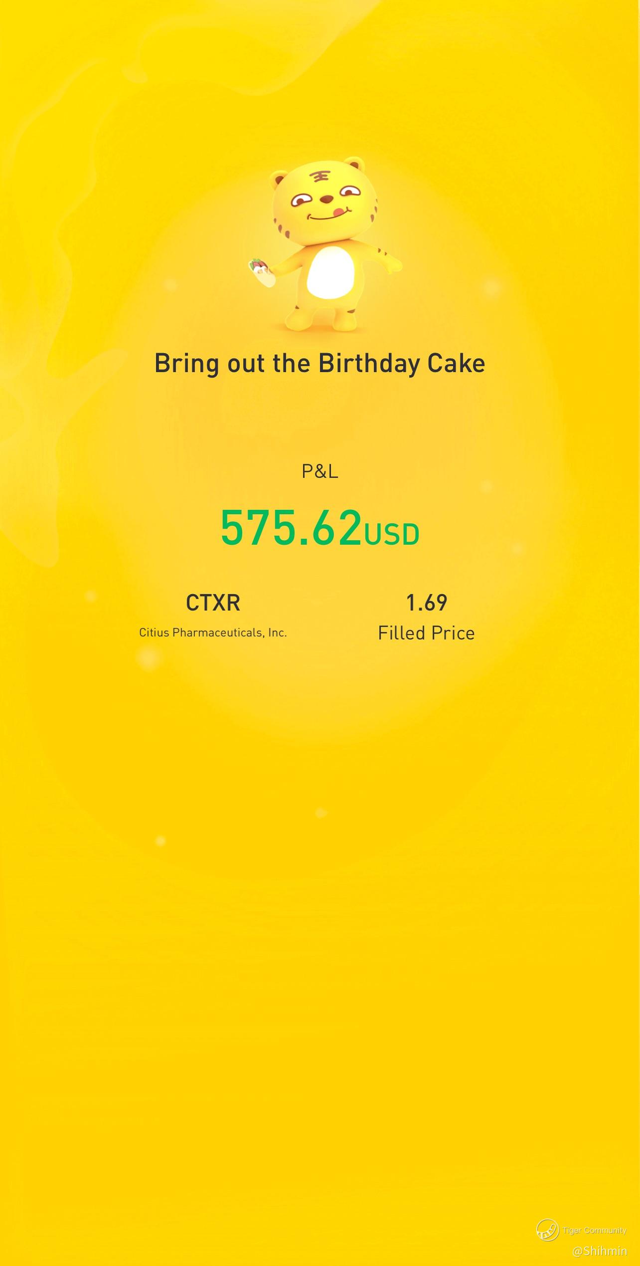 $Citius Pharmaceuticals, Inc.(CTXR)$ Literally my bday today