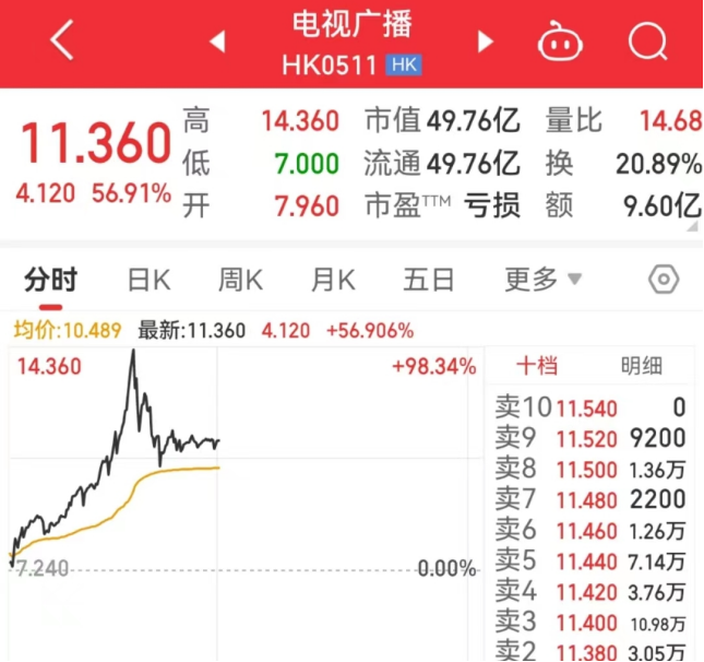 受上述消息影響,TVB上週五股價大漲超過51%。截至3月7日收盤,3天累計漲幅達87%,刷新短期累計漲幅紀錄。此外還帶動香港傳媒股集體飆升,其同行邵氏兄弟控股漲154.1%,英皇文化產業漲122.73%,橙天嘉禾漲45.35%,有線寬頻漲30.77%,鳳凰衛視漲13.04%。