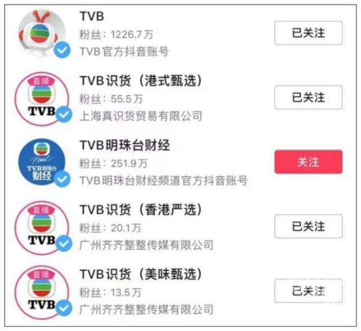 此次並非TVB首次試水直播帶貨行業。2022年4月,TVB入駐抖音直播,在官方賬號以外,開通了3個直播帶貨賬號,分別為TVB識貨(港式甄選)、TVB識貨(美味甄選)和TVB識貨(香港嚴選),由上海真識貨貿易有限公司和廣州齊齊整整傳媒有限公司運營,不過三個賬號粉絲累計還不到一百萬。