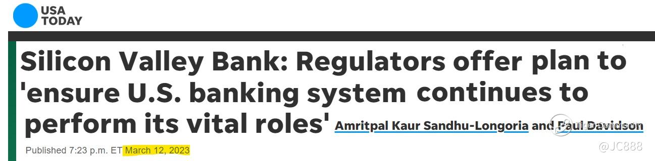 In a joint statement by the 3 Regulators (Fed, FDIC & US Treasury Dept) - they have taken the unusual step to “guarantee deposits”