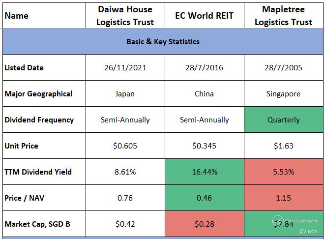 $MAPLETREE LOGISTICS TRUST(M44U.SI)$ $EC WORLD REIT(BWCU.SI)$ $Daiwa Hse Log Tr(DHLU.SI)$