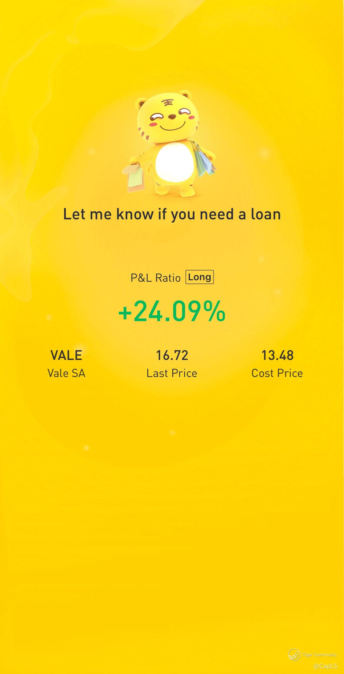 $Vale SA(VALE)$ Commodities and raw materials will only get more expensive as time goes.Inflation and the tug of war between governments Quantitive Tightening and Consumer Spending will be a long one. Mining of raw materials will be poised to make a good home run. Unless you're into overblown China stocks otherswise, Vale gives u good cap appreciation and dividends🤝