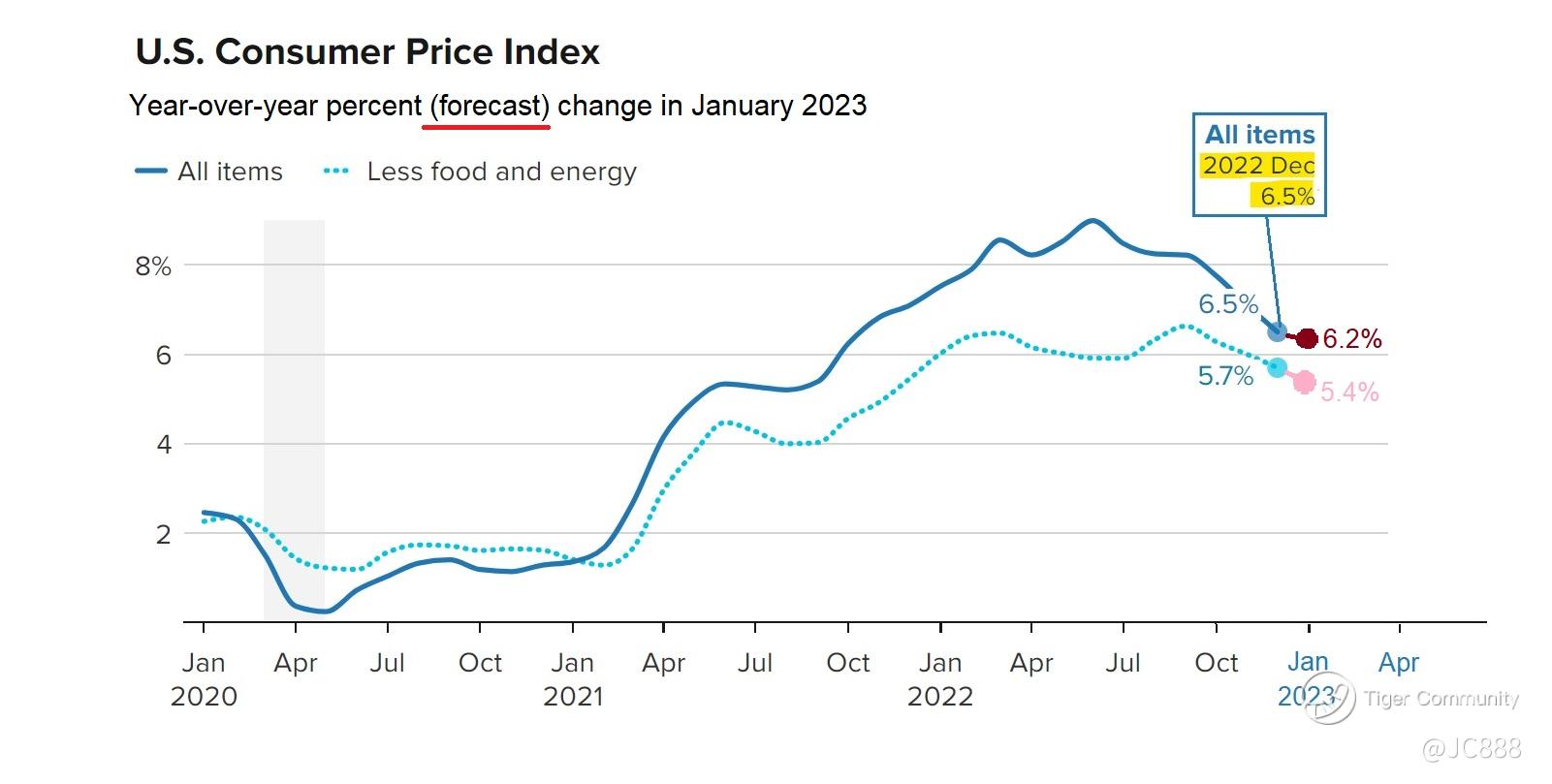 • CPI (all components) will come in at 6.2%; thats a -0.3% from Dec CPI of 6.5%