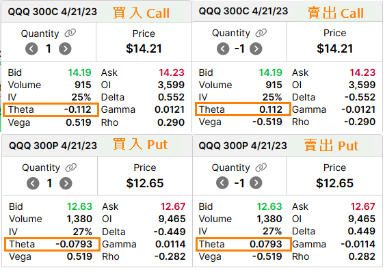 - 買入型策略:Theta= [擁有合約的每日費用]。