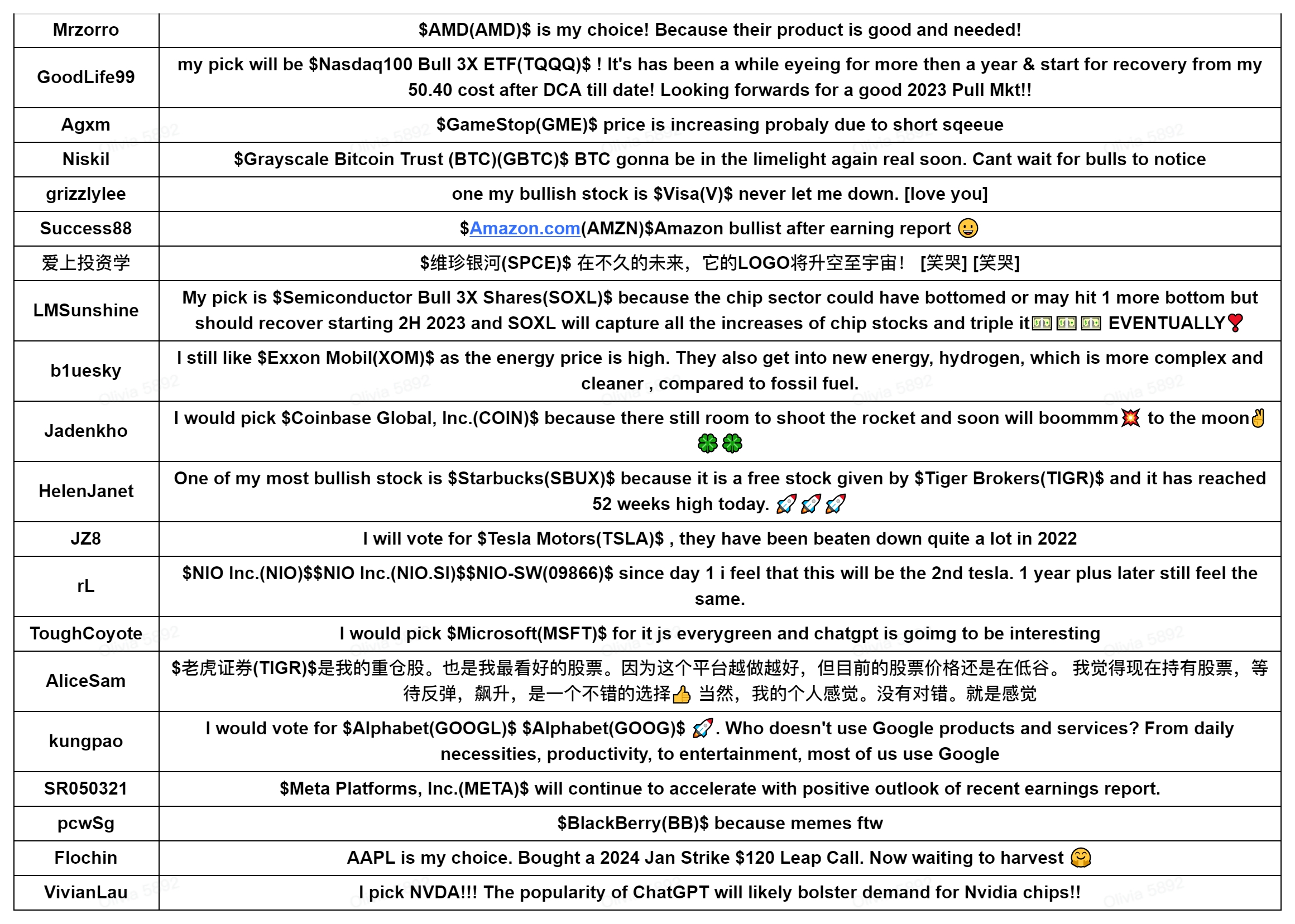 Thursday Special Update: Which is Your Most Bullish Stock in 2023?