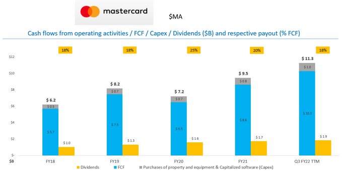 This 18% payout is the same as it was in FY18One of the risks to follow MA is in the middle of a $12 B lawsuit in the (first mass consumer action) UK