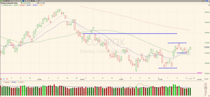 Nasdaq (+0.99%) went higher with bigger volumes than the previous day. As already stated, building a base here before a potential breakout is a healthy price action. Watching this channel while also keeping an eye on a possible violation of the recent support (SMA50 / EMA21 area). $NASDAQ(.IXIC)$